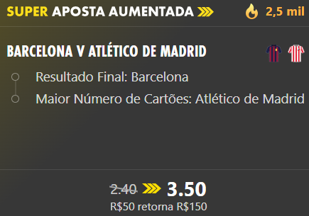 Barcelona x Atlético de Madrid: Barça vence e Atlético tem mais cartões no jogo 2.40 -> 3.50