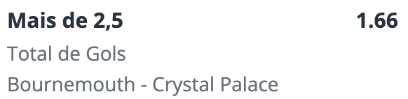 Confira as cotações oferecidas para a partida entre Bournemouth X Crystal Palace: