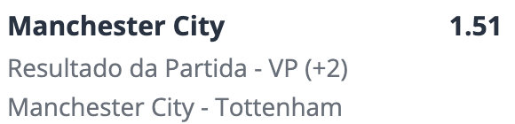 Confira as cotações oferecidas para a partida entre Manchester City X Tottenham: