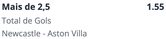 Confira as cotações oferecidas para a partida entre Newcastle X Aston Villa: