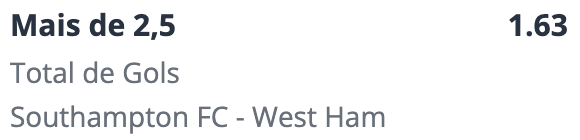 Southampton vem para esse confronto com a vantagem do mando de campo, porém o time do West Ham apresenta um elenco tecnicamente superior. Acreditamos em um confronto aberto e com muitas oportunidades de gols. Com isso, o nosso palpite será no Over 2.5 gols.