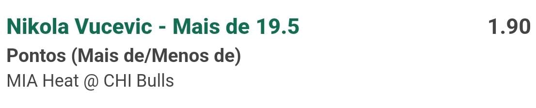 A saida de Zach LaVine do time dos Bulls transfere uma responsabilidade muito grande para os jogadores do Bulls, e muito provavelmente quem assumirá o protagonismo do time será Vucevic ou Coby White. Os dois maiores pontuadores do time depois da LaVine devem ser mais acionados nas partidas a partir de hoje. Nosso palpite é para Nikola Vucevic, do Chicago Bulls, converter pelo menos 20 pontos na partida.